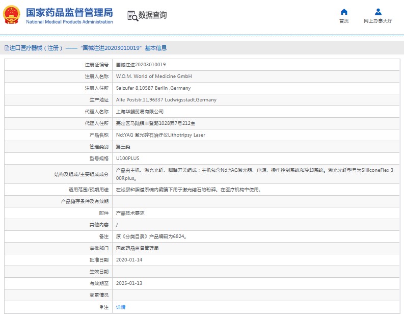 在泌尿和膽道系統(tǒng)內(nèi)窺鏡下用于激光結(jié)石的粉碎。?在醫(yī)療機構(gòu)中使用。