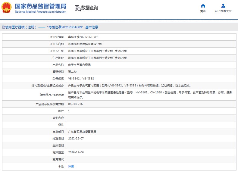 該產(chǎn)品與生產(chǎn)的電子內(nèi)窺鏡圖像處理器(型號:HV-3101、CV-1080)配合使用,用于氣管、支氣管及肺的觀察、診斷、攝影或輔助治療。