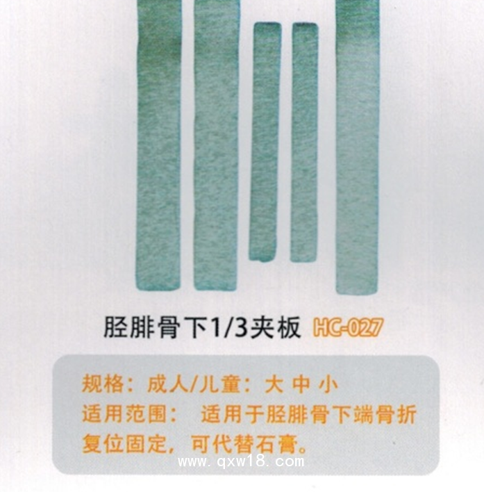 醫(yī)用外固定夾板脛腓骨下1/3夾板HC-027產(chǎn)品說明: