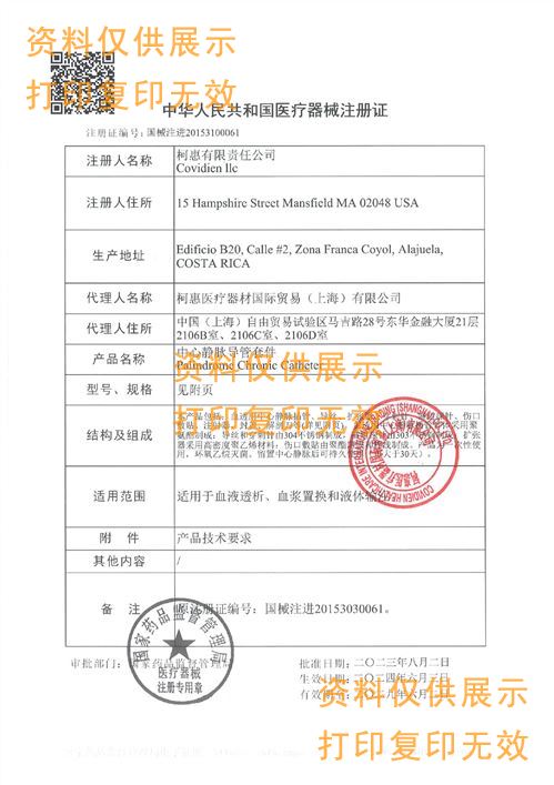 ?本產(chǎn)品包括:血透用中心靜脈插管、導(dǎo)絲、擴張器、穿刺針、隧道探針、傷口敷貼、注射器、封蓋、解剖刀等(詳見附頁)。血透用中心靜脈插管管體采用聚氨酯制成;導(dǎo)絲和穿刺針由304不銹鋼制成;隧道探針由303不銹鋼制成;擴張器采用高密度聚乙烯材料;傷口敷貼由聚酯薄膜和棉線制成。產(chǎn)品為一次性使用,環(huán)氧乙烷滅菌。留置中心靜脈后可持久使用(可大于30天)