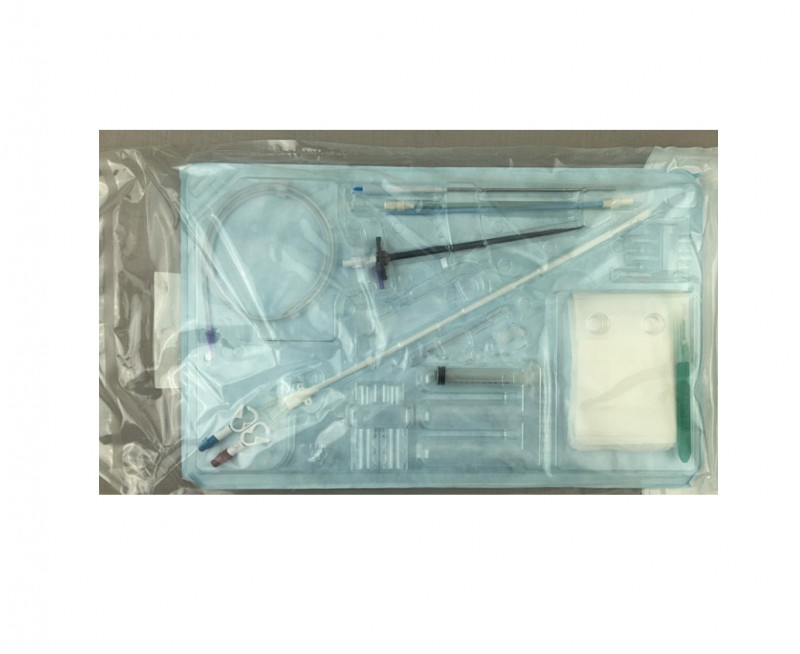 結(jié)構(gòu)與組成:本產(chǎn)品包括血透用中心靜脈插管、導(dǎo)絲、擴(kuò)張器、穿刺針、隧道探針、傷口敷貼、注射器、封蓋、解剖刀等 附頁)。血透用中心靜脈插管管體采用聚氨酯制成;導(dǎo)絲和穿刺針由304不銹鋼制成;隧道探針由303不銹鋼制成;擴(kuò)張器采用 度聚乙烯材料;傷口敷貼由聚酯薄膜和棉線制成。產(chǎn)品為一次性使用,環(huán)氧乙烷滅菌。留置中心靜脈后可持久使用。