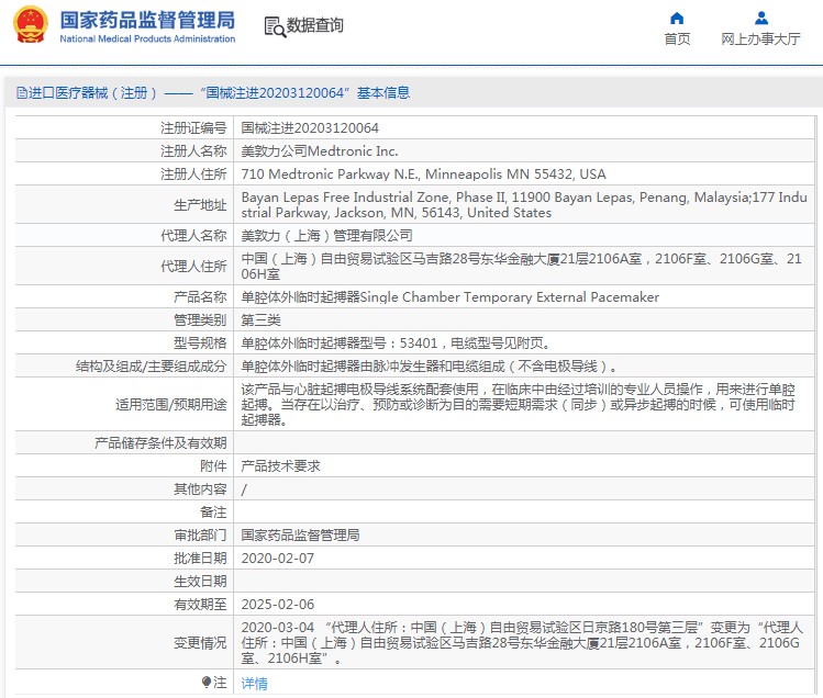 美敦力單腔體外臨時(shí)起搏器產(chǎn)品說明: