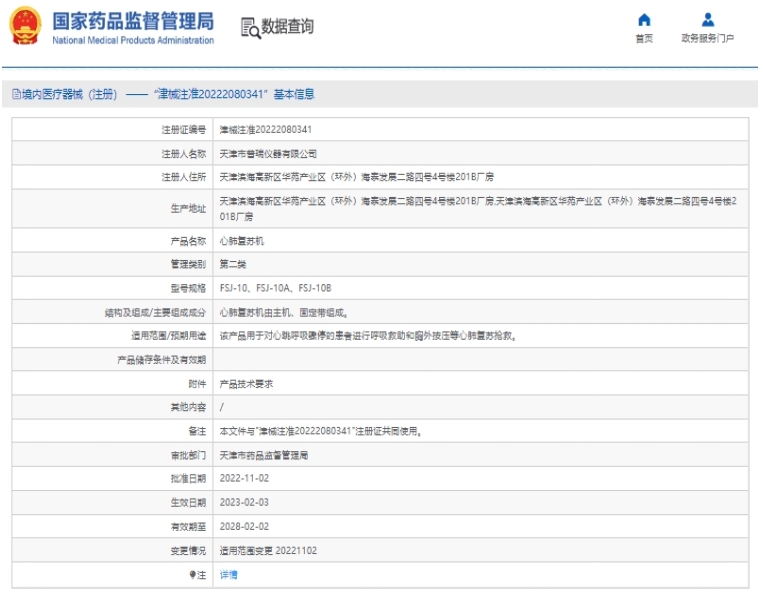 批準文號:津械注準20222080341