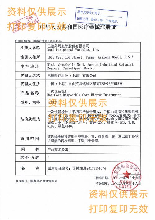 ??? 該活檢器械擬定用于獲得肝、腎、前列腺、脾、淋巴結(jié)和各軟組織瘤的活檢組織。不適用于骨骼。??