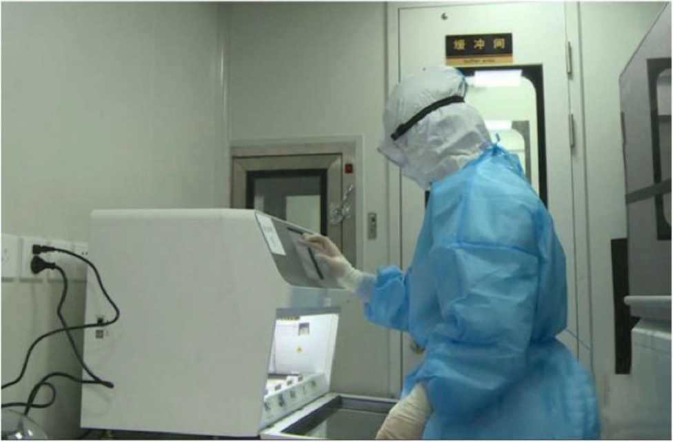 新冠樣品可直接使用標(biāo)本制備區(qū)內(nèi)的對(duì)外傳遞窗進(jìn)行樣品接收。接收到樣本后,將標(biāo)本轉(zhuǎn)運(yùn)容器放入生物安全柜,在安全柜中打開標(biāo)本轉(zhuǎn)運(yùn)容器并清點(diǎn)樣本。