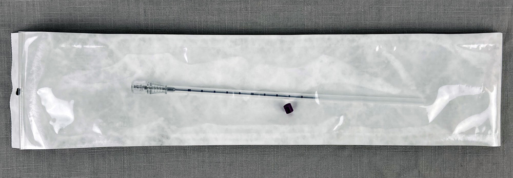 ????? 同軸活檢針由帶有針座的不銹鋼穿刺針(即外套管)和帶有針座的針芯,以及塑料環(huán)(用于套在不銹鋼穿刺針外套管上以標(biāo)記穿刺深度)組成,以下所稱同軸活檢針均包括穿刺針和針芯。穿刺針(即外套管)上刻有厘米刻度。環(huán)的顏色代表不同直徑。黃色=19G、粉色=17G、紫色=15G、綠色=13G、淺藍(lán)色=11G