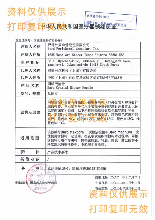 美國巴德BARD同軸活檢針C1616A、C1816A產(chǎn)品說明: