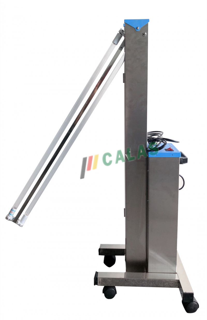 紫外線消毒車采用立式可移動雙管紫 外線消毒燈,360°全方位進行殺菌消毒。