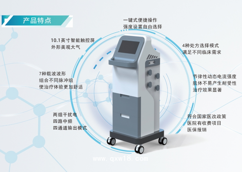 1.國內最先進技術:7種載波、4種干擾模式、343種體感變化,患者治療體感好,治療效果顯著,不會產生耐受性。