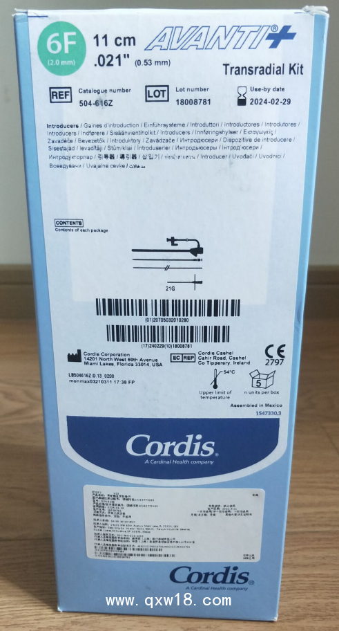 強生Cordis導管鞘及穿刺套件橈動脈鞘504-616Z產品說明: