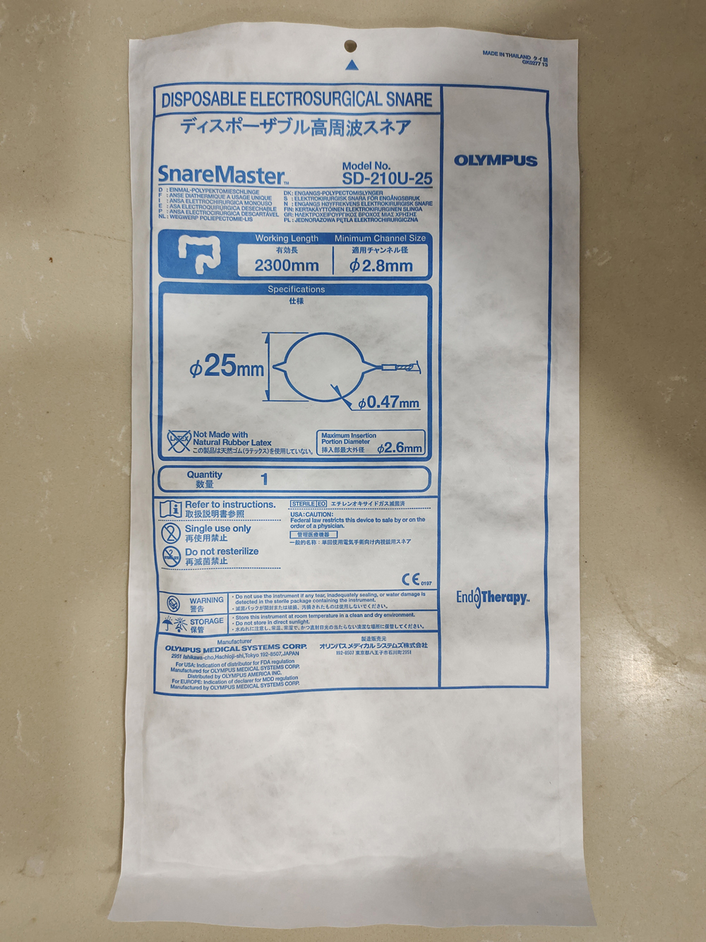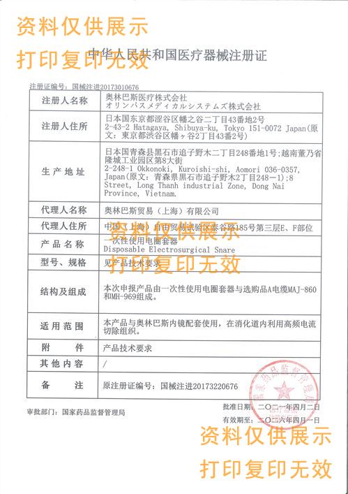 奧林巴斯一次性使用電圈套器SD-210U-25產(chǎn)品說明: