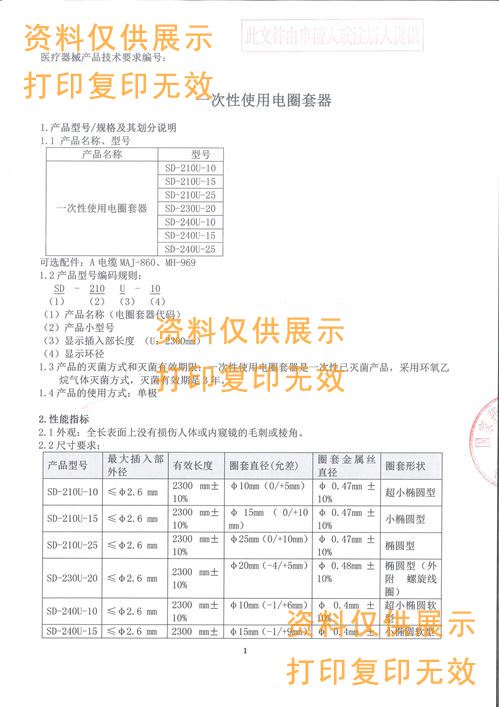 名稱:一次性使用電圈套器