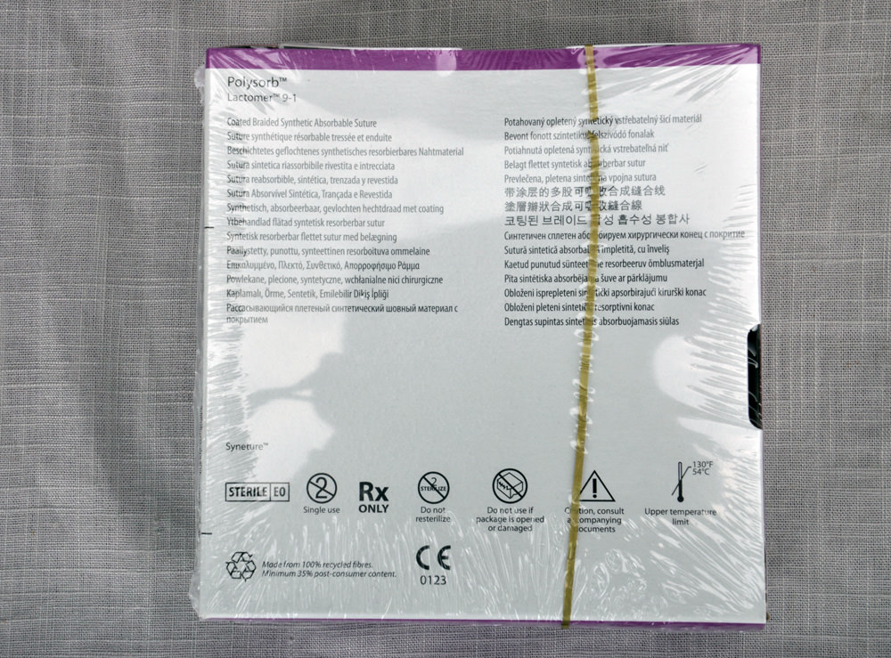 ?結(jié)構(gòu)與組成:材質(zhì)為乙交酯和丙交酯的共聚物,是多股編織涂層,未染色或經(jīng)D&C紫色2號(hào)染色劑染為紫色的縫線,分為帶針和不帶針兩種,規(guī)格從2到8-0。涂層材質(zhì)為乙交酯/己內(nèi)酯共聚物和乳酸硬脂酸鈣的混合物。