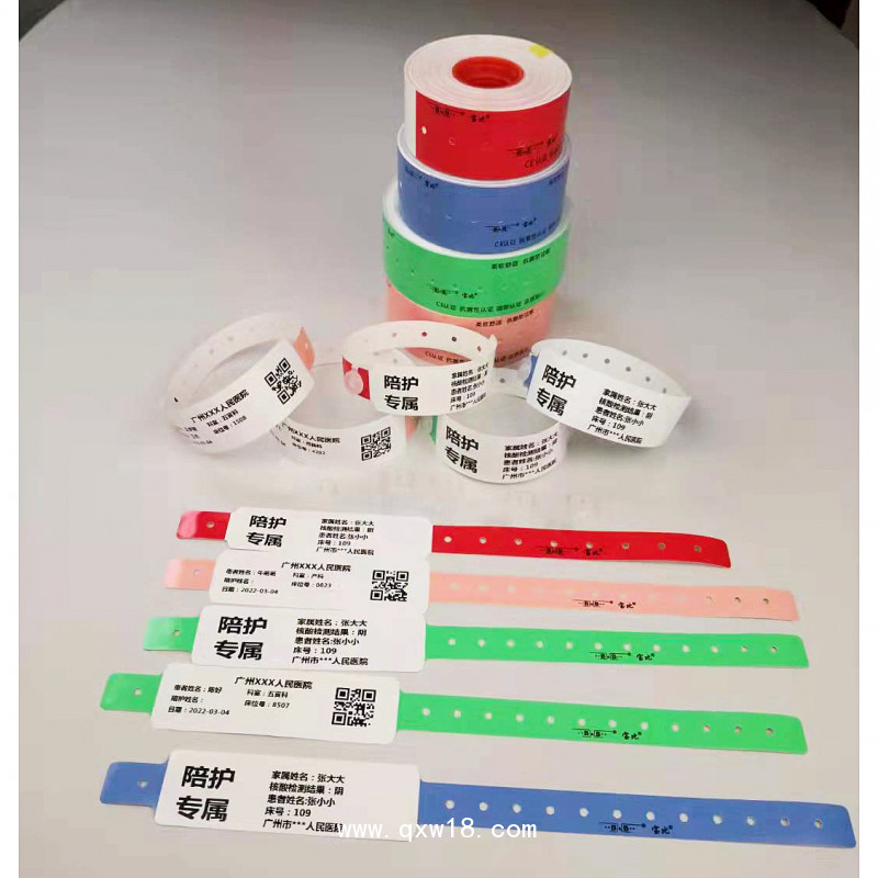 陪護腕帶PVC書寫類熱敏打印類CE認證,抗菌性認證,防過敏,不含乳膠物,不含鄰苯二甲酸鹽,防水防酒精十多年廠家,種類豐富,規(guī)格顏色選擇多,具體可來電咨詢,量多價優(yōu)