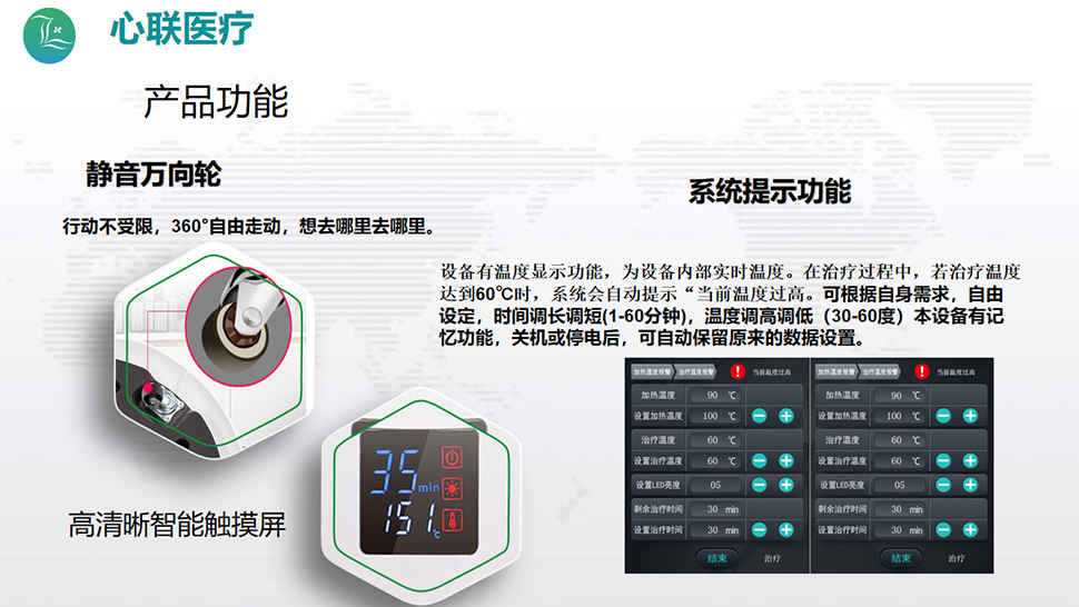 通過對灸材加熱,用做中醫(yī)灸療的工具;紅光輻射裝置用于緩解疼痛的輔助治療。