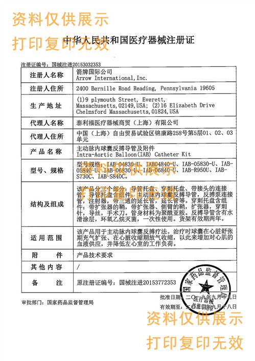 適用范圍:該產(chǎn)品用于主動(dòng)脈內(nèi)球囊反搏療法。治療時(shí)球囊在心臟舒張期充氣擴(kuò)張、在心臟收縮期放氣收縮,以此來(lái)增加對(duì)心肌的血液供應(yīng),并降低左心室的工作負(fù)荷。
