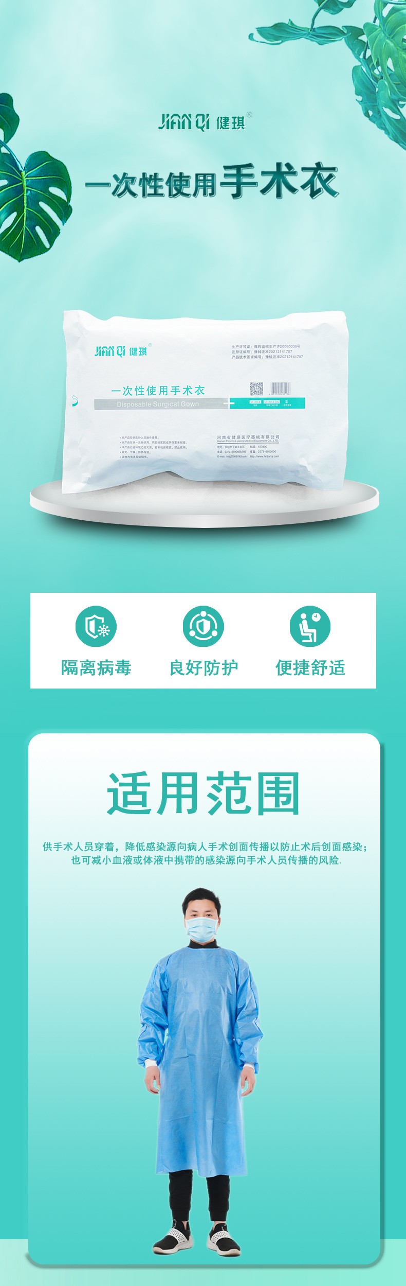 一次性使用手術衣 河南健琪廠家招商產(chǎn)品說明: