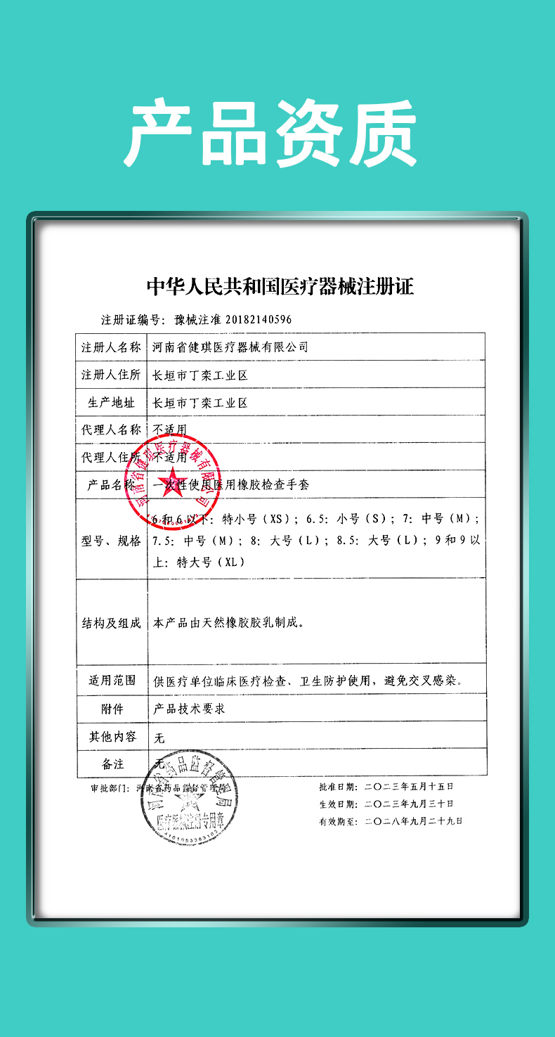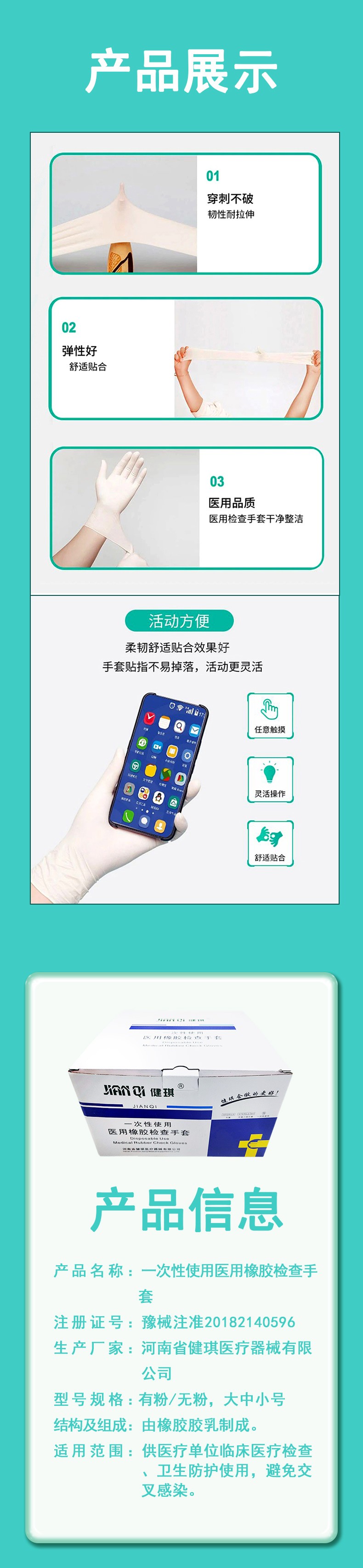 一次性使用醫(yī)用橡膠檢查手套 河南健琪廠家招商產(chǎn)品說明: