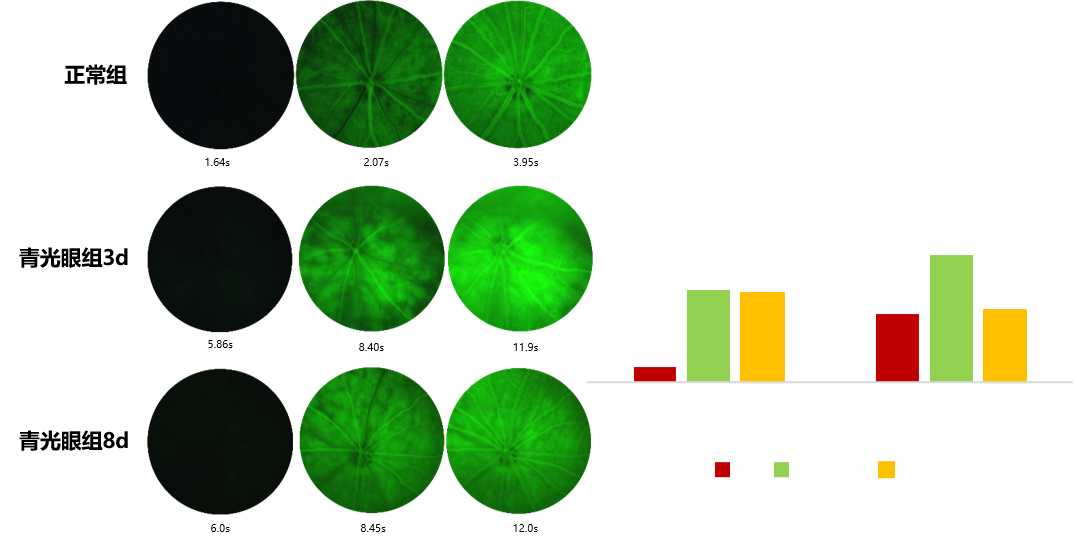 基于視頻錄制功能對眼底動靜脈充盈時間進行量化處理,根據(jù)圖表統(tǒng)計可看出青光眼模型組老鼠動靜脈充盈時間較正常組有延長。