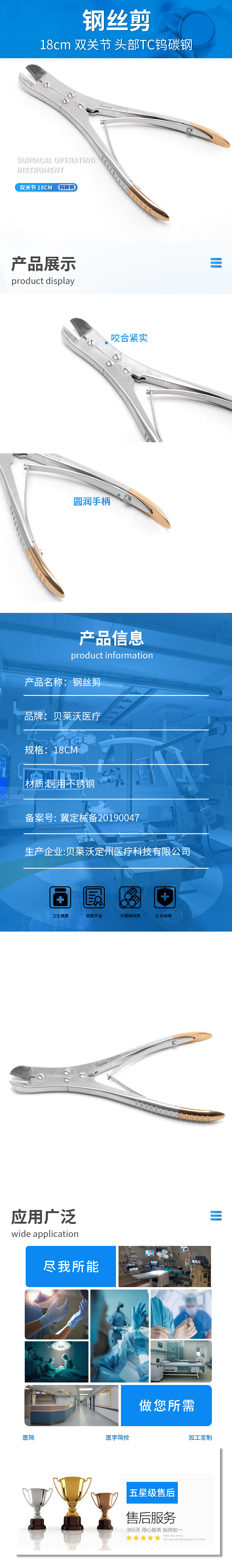 骨科鋼絲剪 德國(guó)不銹鋼頭部鎢碳鋼鋼絲剪雙關(guān)節(jié)鋼絲剪醫(yī)用鋼絲剪產(chǎn)品說明: