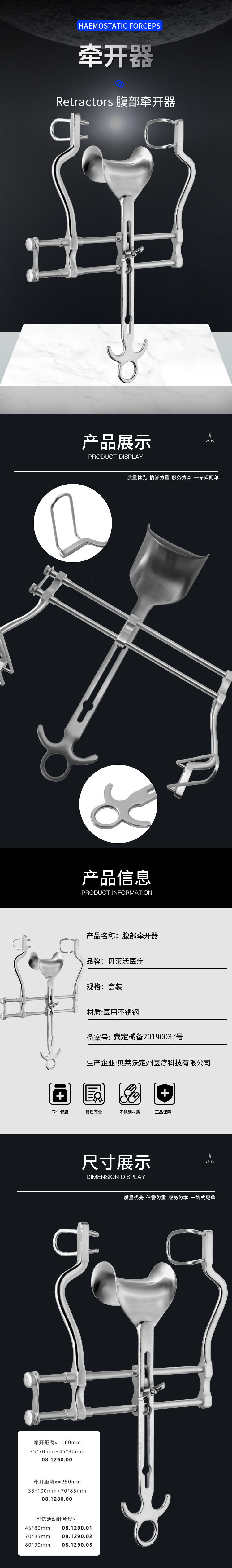 Retractors不銹鋼材質(zhì)制成 基礎(chǔ)外科腹部 腹部牽開器產(chǎn)品說明:
