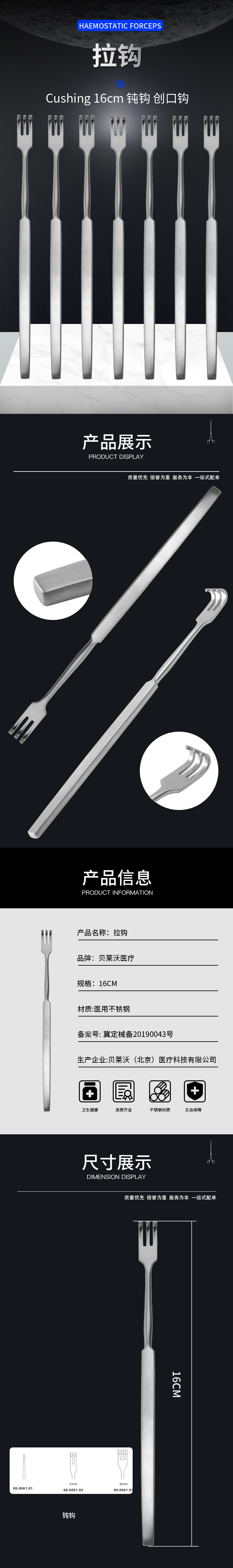 貝萊沃優(yōu)質(zhì)不銹鋼制成創(chuàng)口鉤 Cushing鈍鉤外科創(chuàng)口鉤產(chǎn)品說(shuō)明: