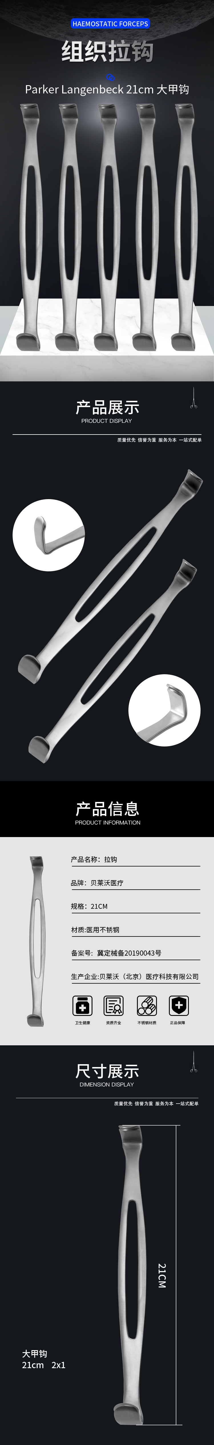 德國不銹鋼組織拉鉤 大甲鉤基礎(chǔ)外科組織拉鉤 雙頭拉鉤醫(yī)用拉鉤產(chǎn)品說明: