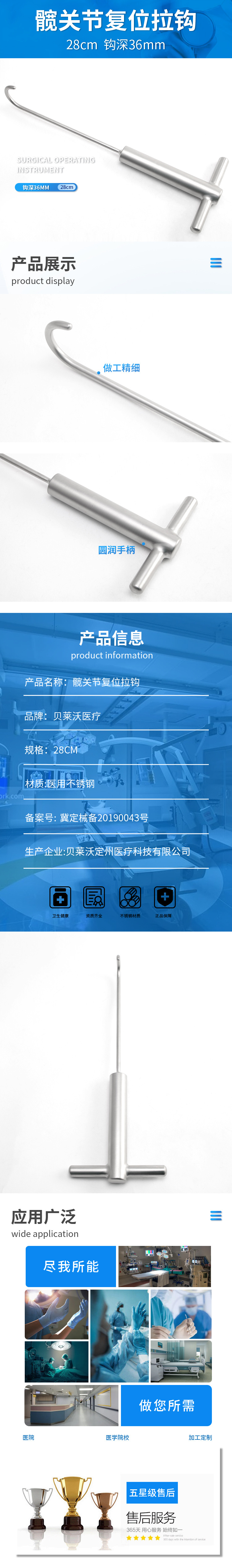 骨科髖關(guān)節(jié)復(fù)位拉鉤 醫(yī)用骨鉤不銹鋼直型髖關(guān)節(jié)復(fù)位拉鉤手術(shù)拉鉤產(chǎn)品說明:
