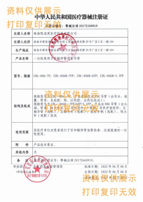 一次性使用子宮輸卵管造影導管CDL-006B-5.5FP產(chǎn)品說明: