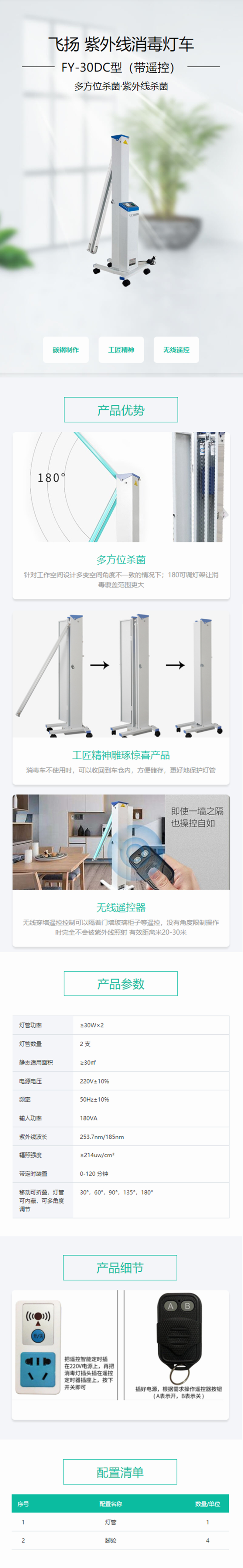 飛揚 紫外線 消毒燈車 FY-30DC型(帶遙控)產(chǎn)品說明: