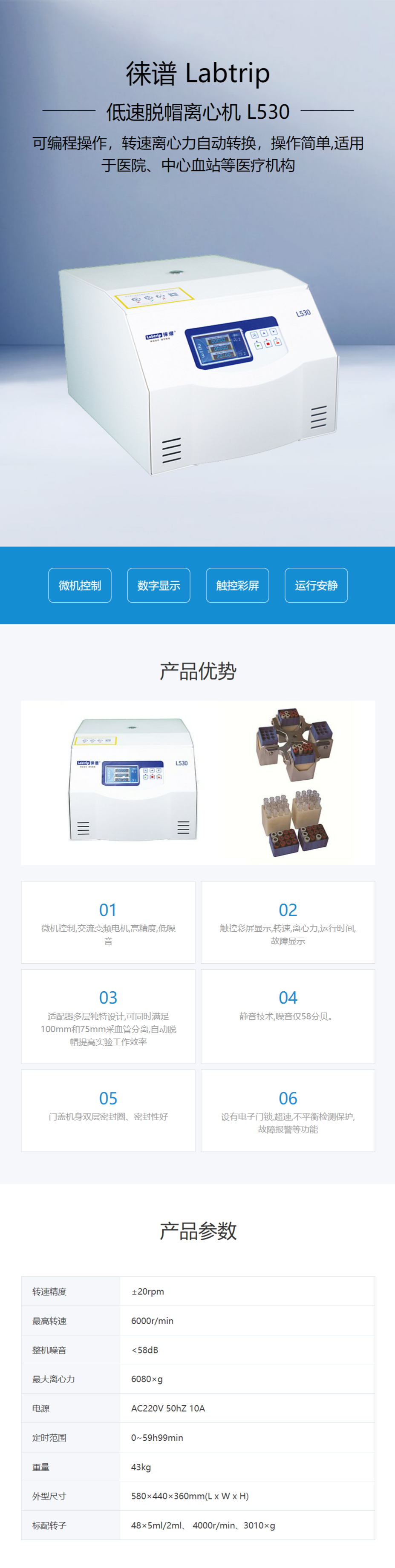 徠譜 Labtrip 醫(yī)用離心機(jī)自動(dòng)脫帽48孔 L530產(chǎn)品說(shuō)明: