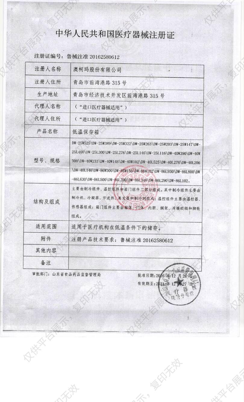 注冊(cè)證號(hào):魯械注準(zhǔn)20162580612