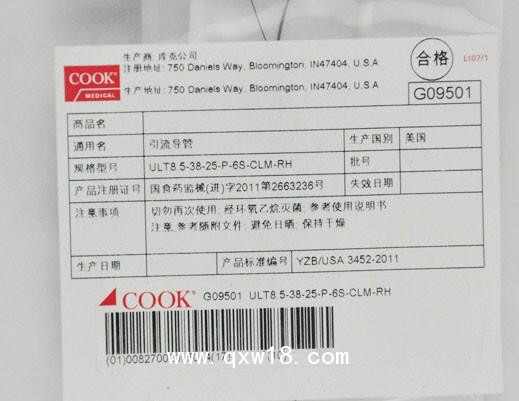 庫(kù)克引流導(dǎo)管生產(chǎn)商:庫(kù)克(中國(guó))醫(yī)療貿(mào)易有限公司