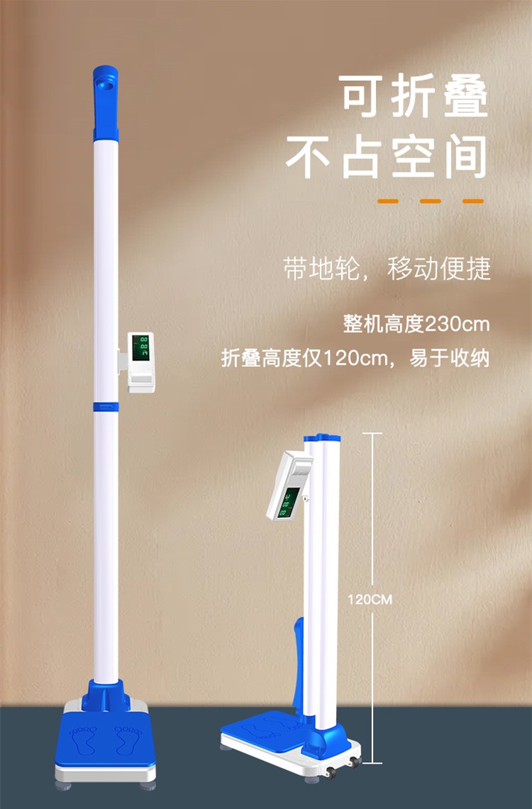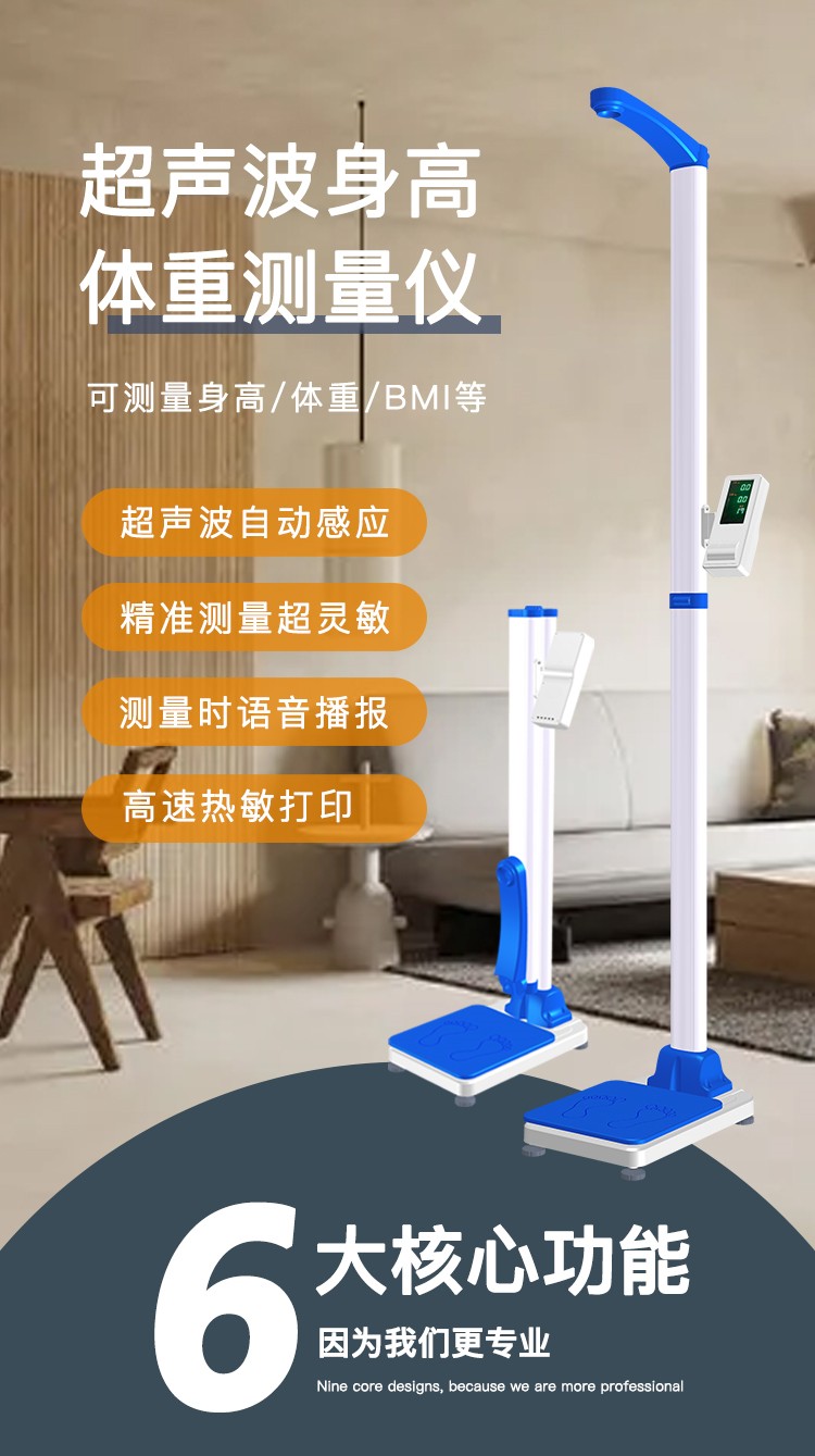 DHM-30D型全自動(dòng)身高體重秤采用微電腦控制,可自動(dòng)測量身高、體重、BMI,測量結(jié)果采用數(shù)碼屏顯示并語音播報(bào),打印測量結(jié)果;機(jī)身輕巧,可折疊,帶地輪,移動(dòng)方便,折疊后高度120cm。先進(jìn)的超聲波測高,精密傳感器測重,使測量更準(zhǔn)確??膳c計(jì)算機(jī)連接(標(biāo)配USB連接,選配無線藍(lán)牙,WIFI等),以備存檔;本機(jī)機(jī)身輕巧,使用方便,測量高效,是醫(yī)院、藥房、診所、學(xué)校、商超、幼兒園、健身場所、社區(qū)服務(wù)中心、體檢中心、健康小屋項(xiàng)目和政府事業(yè)單位等部門和單位的理想選擇。