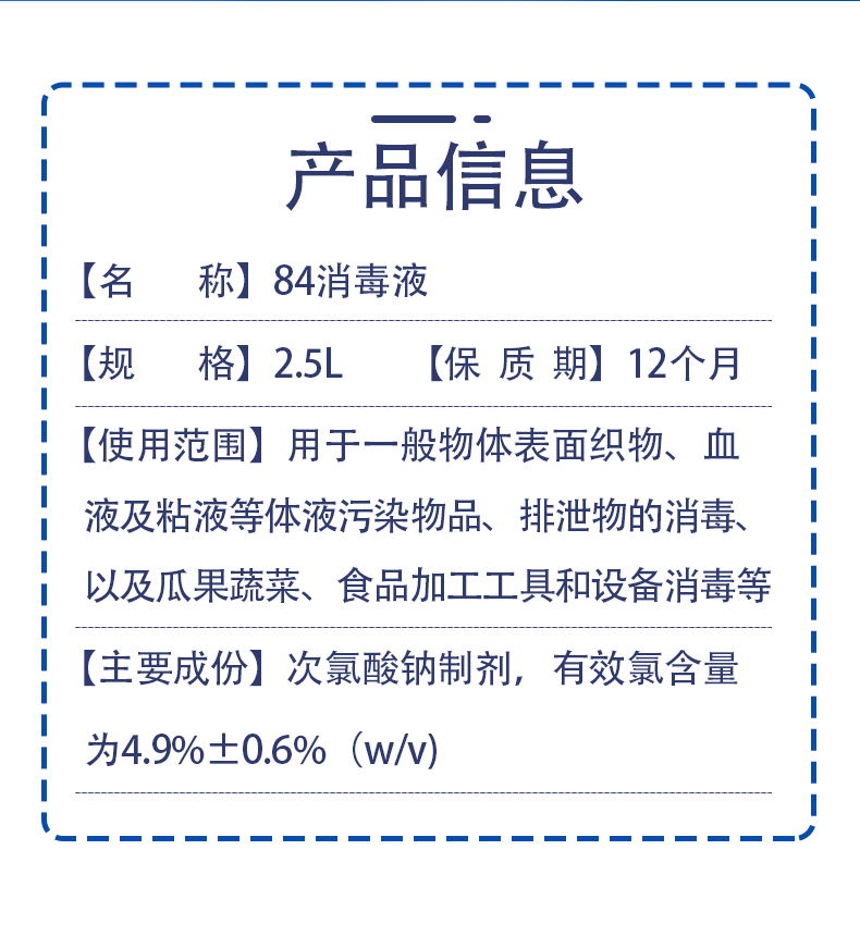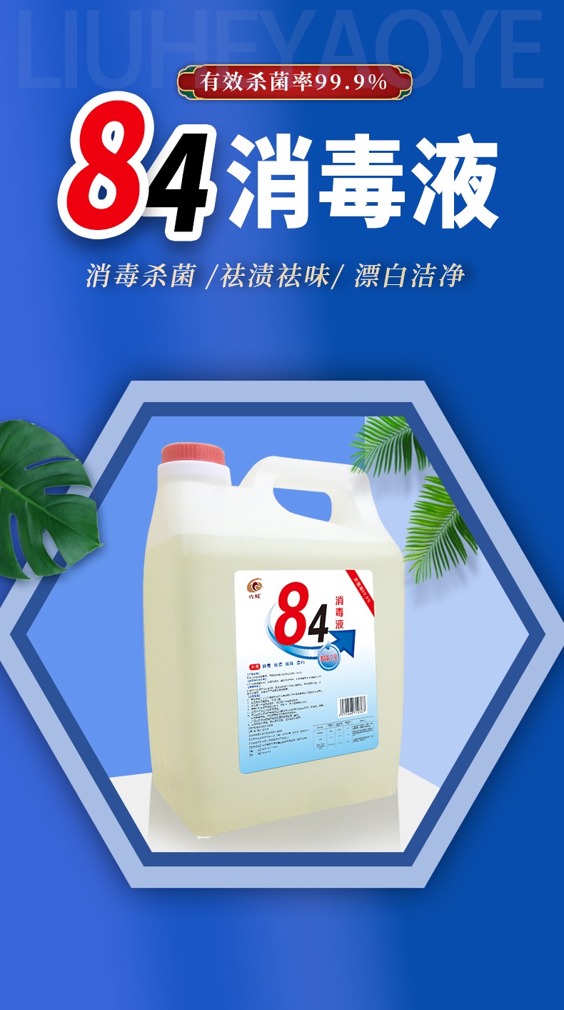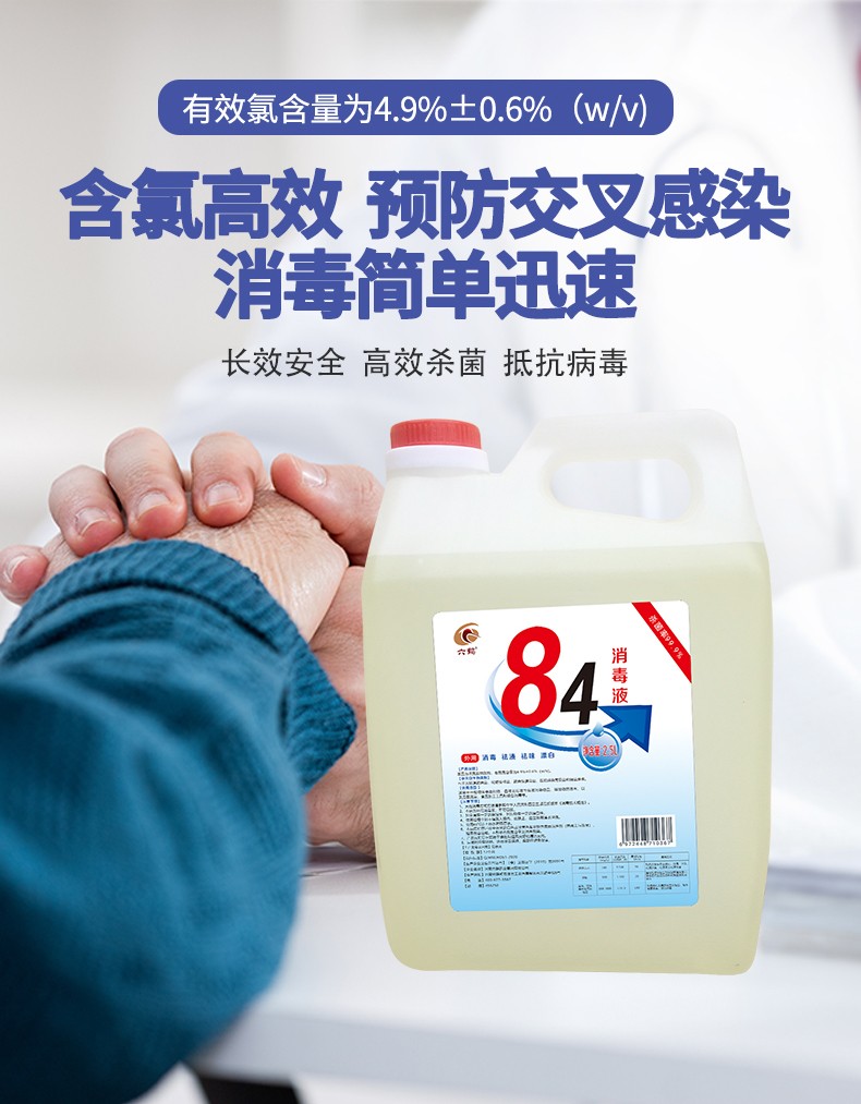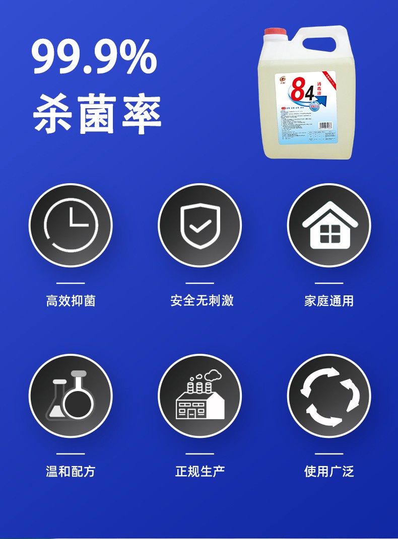 現(xiàn)貨84消毒液2.5L次氯酸鈉醫(yī)院酒店室內(nèi)衛(wèi)生間防疫產(chǎn)品說明: