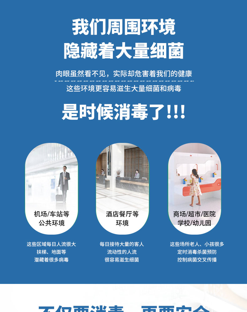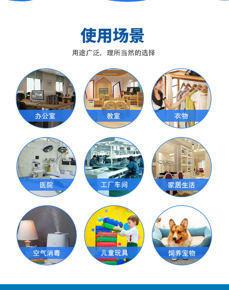 [適用范圍]適用于一般物體表面消毒,手部消毒,機翼地面、空間和環(huán)境消毒。適用于醫(yī)療領(lǐng)域和公共場所,日常生活中的環(huán)境、物表殺菌消毒。建議根據(jù)使用場景選擇產(chǎn)品適用類型。