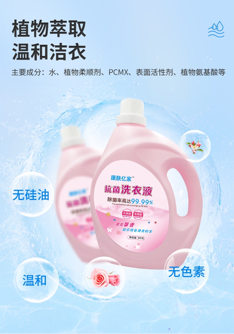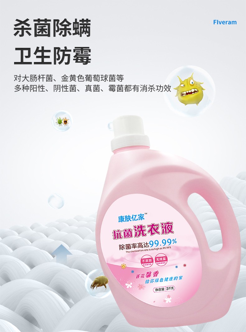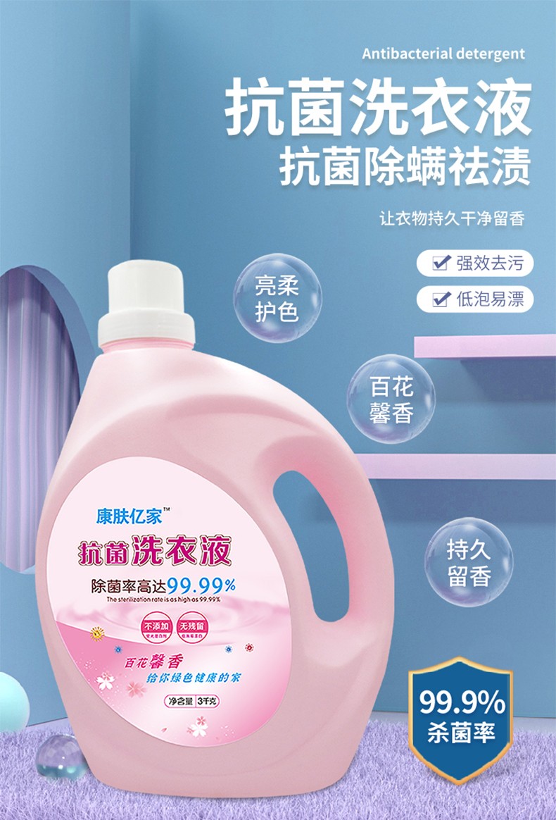 抗菌洗衣液3KG去污抑菌除螨現(xiàn)貨批發(fā)可貼牌加工OEM/ODM產(chǎn)品說明: