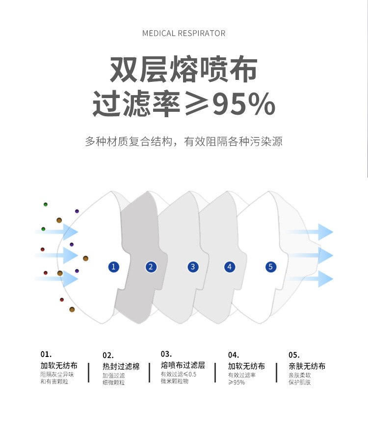廠(chǎng)家直銷(xiāo)N95口罩掛耳式/頭戴式防飛沫醫(yī)用防護(hù)口罩掛網(wǎng)中標(biāo)產(chǎn)品說(shuō)明: