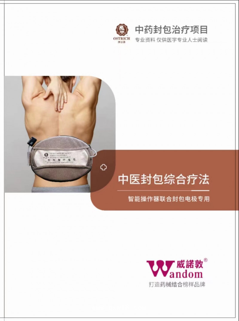 中醫(yī)封包治療是以中醫(yī)外治理論為基礎(chǔ),將現(xiàn)代康復(fù)、亞納米、智能控制等多項技術(shù)相結(jié)合,研制而成的智能新型實用技術(shù)。它通過熱能的作用,將含有效的活化物質(zhì)的封包敷于人體特定的穴位或病灶,使得遠(yuǎn)紅外熱能、離子活化物等同時自體表毛竅慢慢地滲透入經(jīng)絡(luò)血脈, 具有調(diào)理氣血、祛風(fēng)散寒、活血通竅、消腫止痛之功,以及強(qiáng)筋骨、補(bǔ)肝腎等作用。