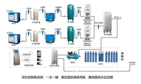 醫(yī)用中心制氧系統(tǒng)又稱醫(yī)用分子篩變壓吸附PSA制氧系統(tǒng),是以分子篩(molecular sieve)為吸附劑,通過變壓吸附法(pressure swing adsorption,PSA)以空氣為原料,在常溫低壓的條件下,利用分子篩加壓時對空氣中的氮?dú)猓ㄎ劫|(zhì))吸附容量增加,減壓時對空氣中的氮?dú)馕饺萘繙p少的特性,形成加壓吸附、減壓解吸的快速循環(huán)過程,使空氣中的氧和氮?dú)獾靡苑蛛x,而空氣中的二氧化碳、氣態(tài)酸和其它氣態(tài)氧化物等,均屬于分子極性很強(qiáng)的物質(zhì),很難通過分子篩,從而使產(chǎn)出氧的氧氣純度達(dá)到93% 以上)。