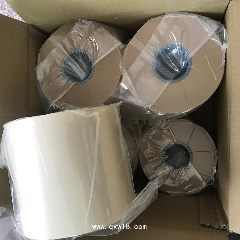 產(chǎn)品外觀半面無色透明,半面印有白色底色,均勻一致,安全無毒性;熱合溫度低,達80°C-105°C,