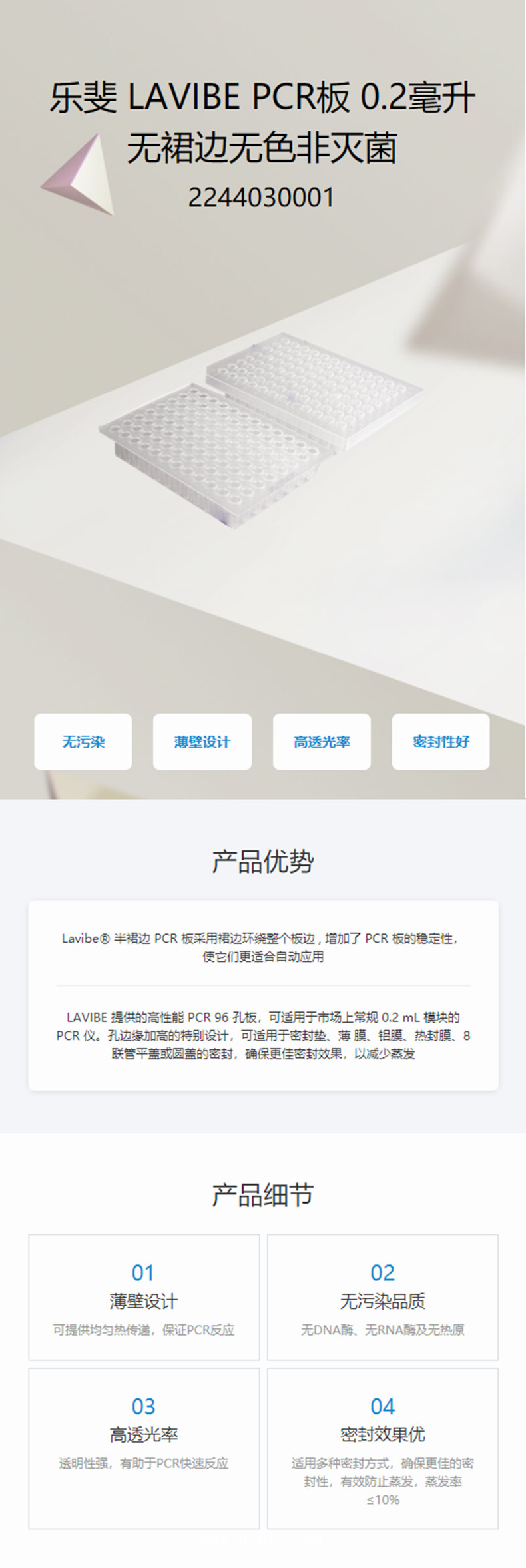樂斐LAVIBE-PCR板0.2毫升無裙邊無色非滅菌產(chǎn)品說明: