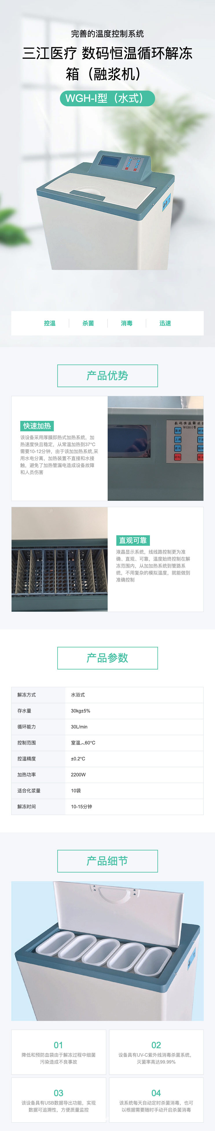 三江醫(yī)療-數(shù)碼恒溫-解凍箱(融漿機(jī))WGH-I型(水式)產(chǎn)品說明: