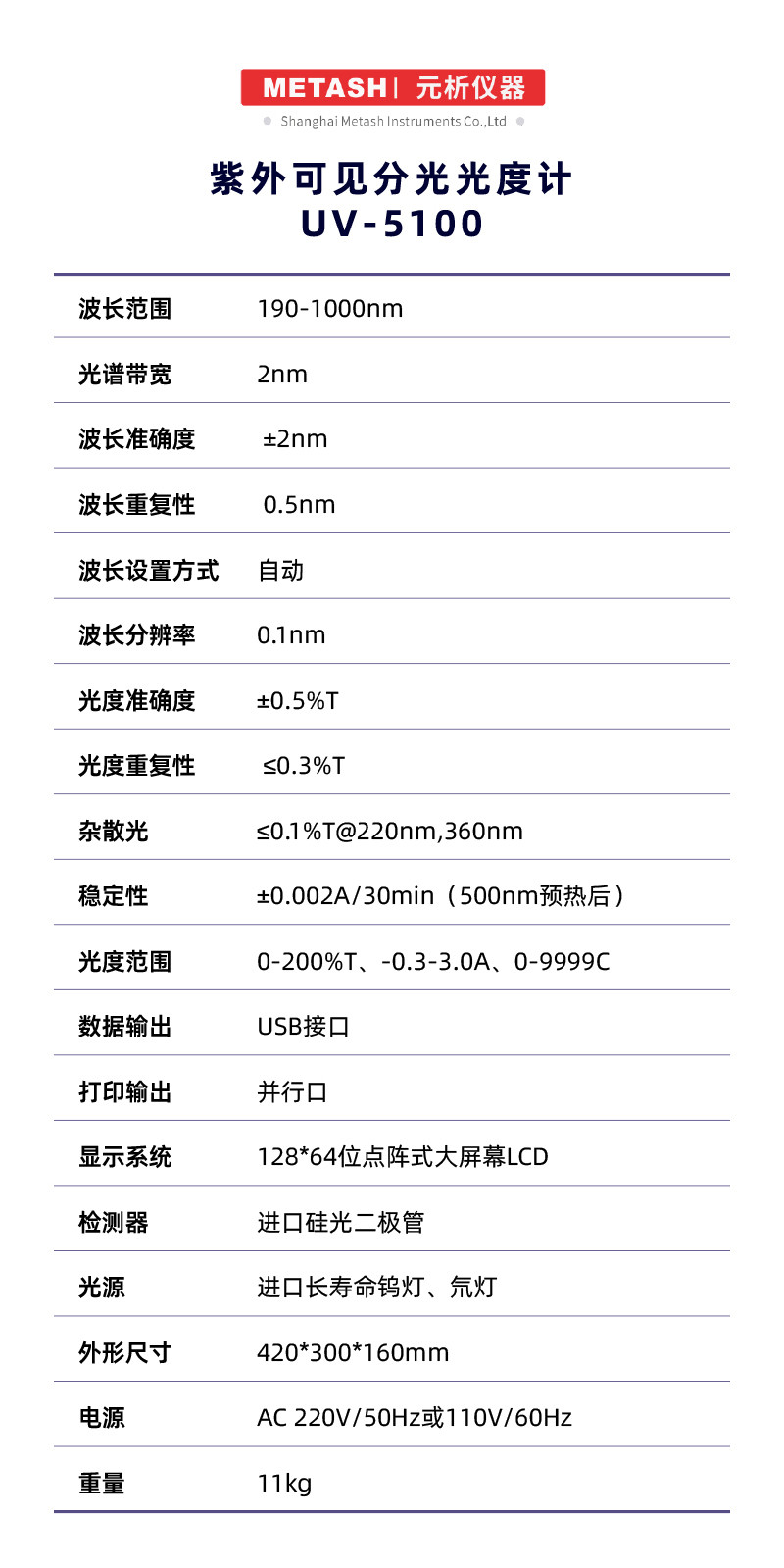 元析METASH-紫外可見分光光度計UV-5100型產(chǎn)品說明: