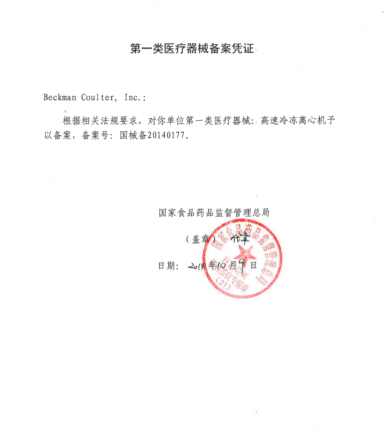 備案憑證號(hào):國械備20140177