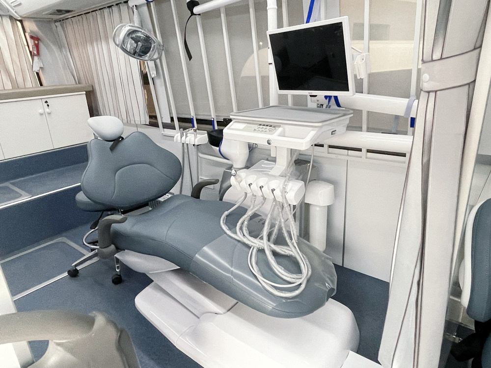 艾克瑞移動(dòng)牙科車上配置有口腔內(nèi)窺鏡、綜合治療椅、超聲波潔牙機(jī)、牙科影像板掃描儀、洗手池、儲(chǔ)水罐、工具儲(chǔ)存箱、紫外線消毒燈等一系列口腔醫(yī)療專用設(shè)備,并配有完善的凈水系統(tǒng)、污水處理系統(tǒng)等。常規(guī)的口腔診療服務(wù),都可以在移動(dòng)牙科車上展開(kāi),能夠滿足不同年齡層次的口腔診療需求。體檢中心和醫(yī)院配置了這款移動(dòng)牙科車后,醫(yī)療機(jī)構(gòu)就可以定期開(kāi)進(jìn)幼兒園、學(xué)校、社區(qū)、單位、工廠、福利院等地開(kāi)展口腔健康宣教、口腔健康體檢和免費(fèi)口腔疾病預(yù)防篩查服務(wù)。