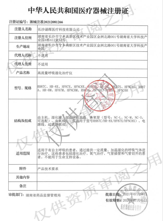 涵暉 高流量呼吸濕化治療儀 HR-8M產品說明: