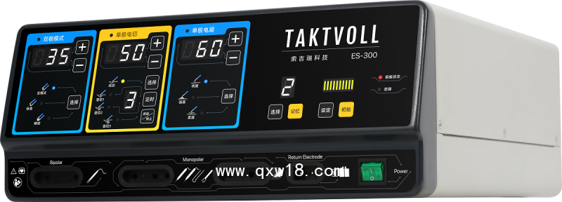 3、具有雙極切割和凝血功能,雙極最大輸出功率150W,帶組織阻抗控制技術(shù),當(dāng)組織閉合完成時可以自動停止輸出并聲音提示,避免發(fā)生組織碳化的情況。