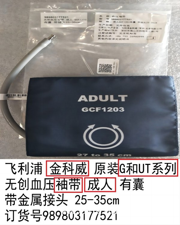 飛利浦 金科威 原裝G和UT系列無創(chuàng)血壓袖帶 成人 25-35cm? 有囊 能接訂貨號M1599A袖管 帶金屬接頭訂貨號989803177521?