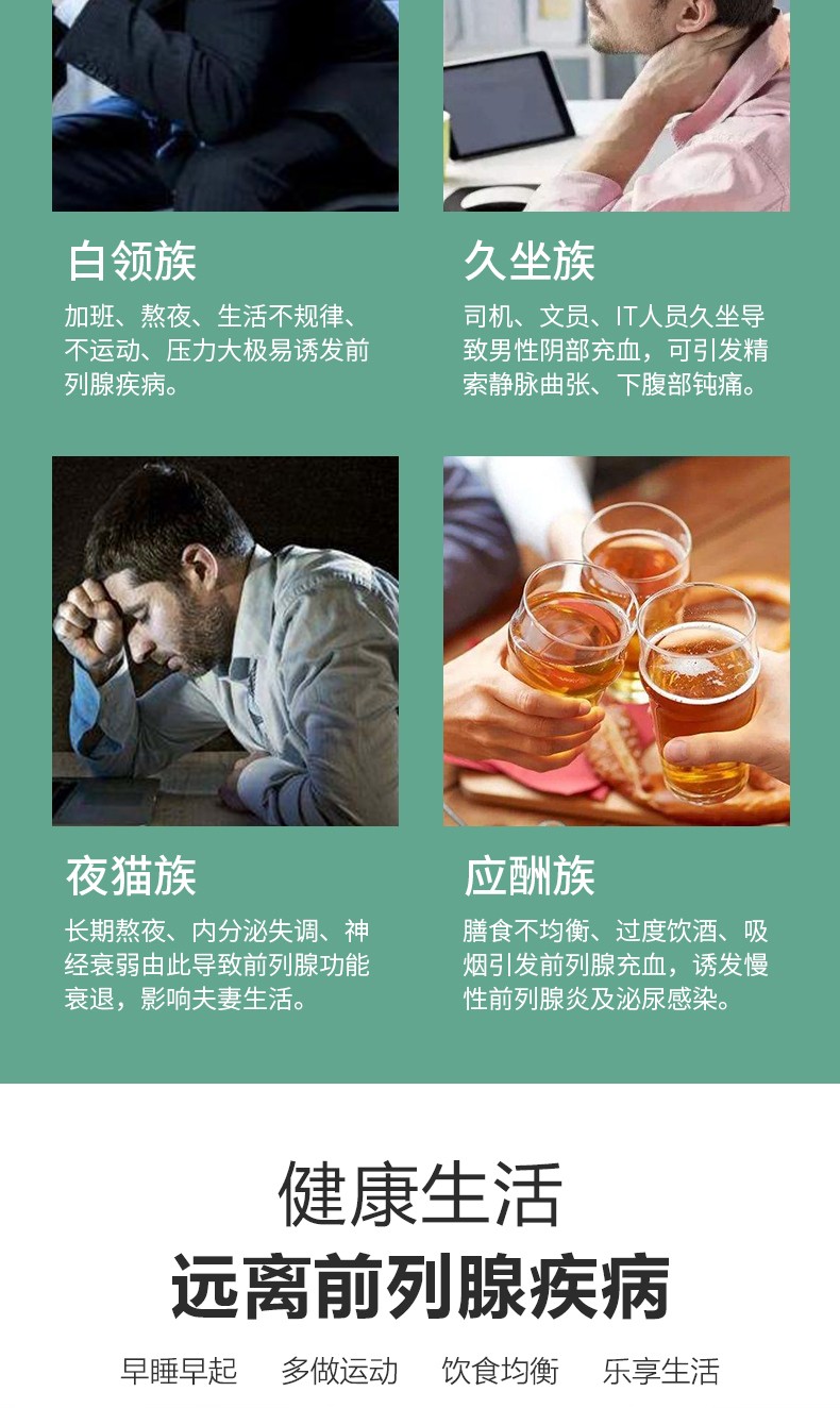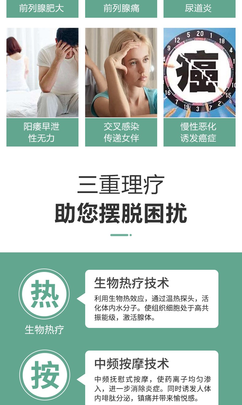 適用于前列腺炎、前列腺增生癥合并前列腺炎、精囊炎、前列腺痛的輔助治療。